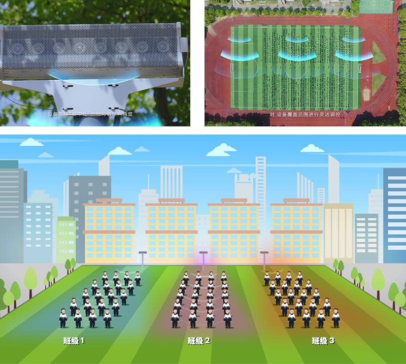 正是在此成熟经验与良好声誉的坚实基础上,秦淮区第一中心小学与马府街小学经过审慎评估与考察,正式引进清听声学安静操场系统(校园定向扬声器)。通过自主研发的定向声技术,将音频能量如光束般精准聚焦于操场目标区域,实现系统前后方声压差最高可达40dB,从而在校园操场与周边环境之间,构建起一道清晰、高效的“声音结界”。