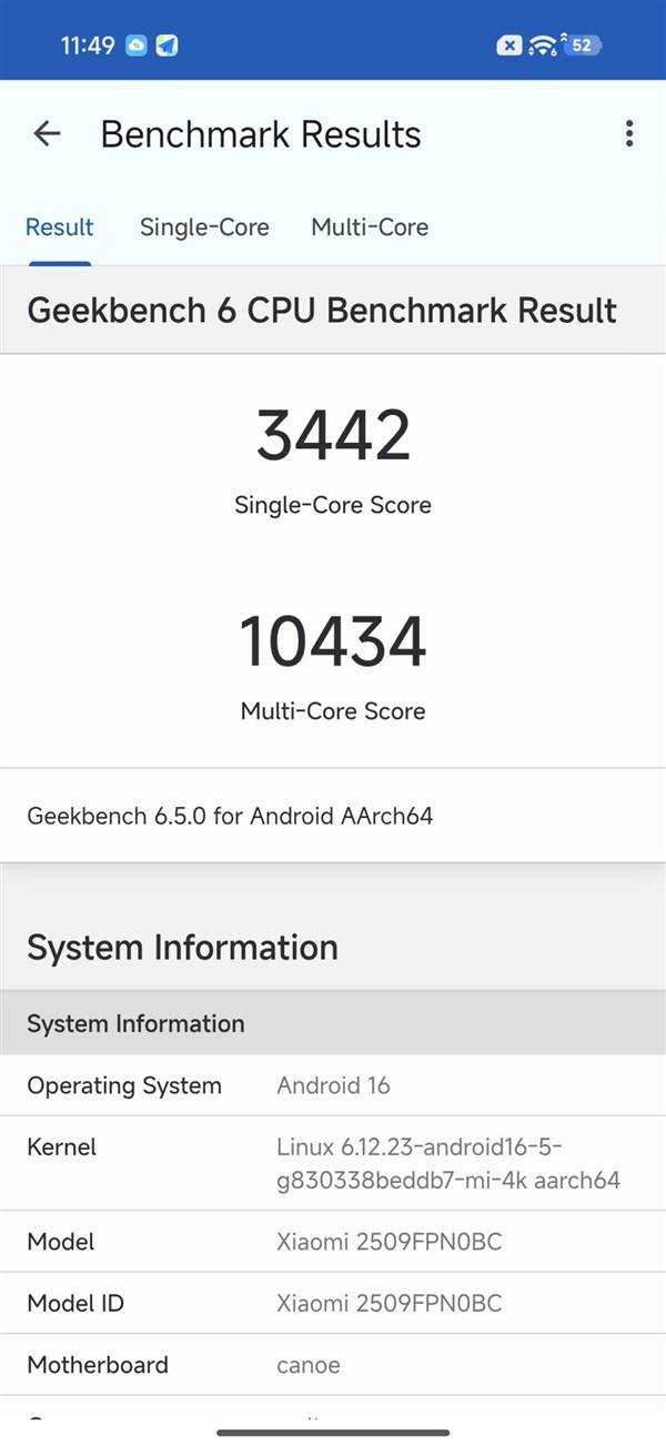 本次的第五代骁龙8至尊版的实际表现也非常棒,在GeekBench6中单核跑分可超3800分,多核性能超12000分。